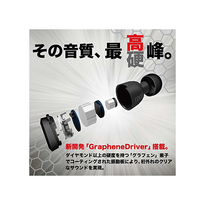 【GrapheneDriver】 드라이버내 에 있는 진동판으로,탄소 소재의 일종이고, 다이어 몽 드 이상으로 탄소 끼리의 결합이 강하고, 진동판으로 요구되는 강도나 강성 을 높은 레벨에 실현 한다「Graphene(그래프《》)」를 코팅 하는 것(일)에 의해(왜곡)변형의 원인이 되는 진동 판의 불필요한 분할 진동을 억제