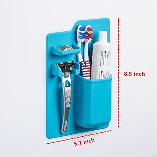 Silicone Toothbrush Holder, ICASA,Mighty Toothpaste Razor Holder Bathroom Must Have Organizer Storage Blue