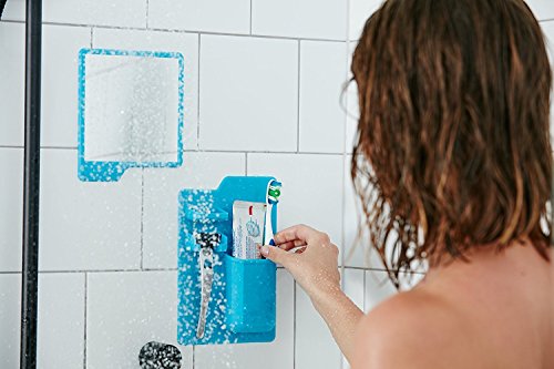 - ★[USAGE] The Mighty Toothbrush Holder combines a toothbrush holder, razor rack, jewelry dish and compact shower caddy all-in-one. It helps you to create a new storage space above the bathroom sink or store your toiletries in the shower room. Great for travel, you can take it to hotels, gyms, or dorms, convenient to storage your small bathroom items.
