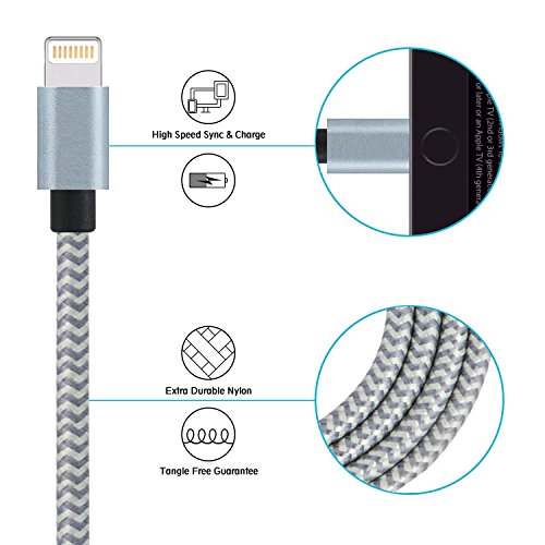 - What you get: 3-Pack 3ft durable nylon gray cords in one package. This is a high quality, high-speed Apple lightning cable that's made to perform. You can enjoy freedom of movement in your house, office or anywhere you want.