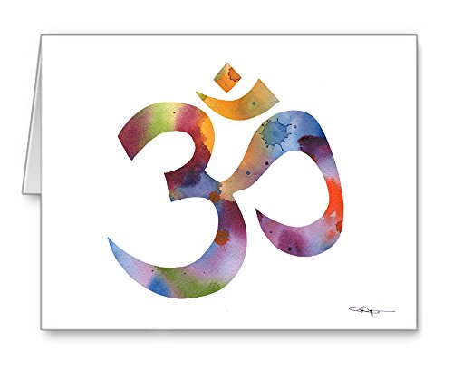 -. Feature : "Om Symbol" artwork by watercolor artist DJ Rogers. / Note card size is 4.25 x 5.5 inches / Set of 10 note cards with matching white envelopes. / Note cards are blank inside for your personal message. / Suitable for framing.
