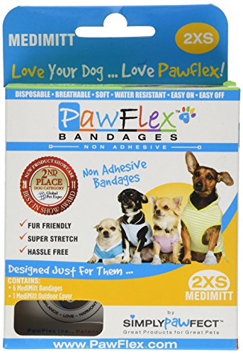 -. Binding : Misc. -. Brand : PawFlex Bandages -. Feature : Easy on easy off stress free bandages made specifically for the paws Breathable flexible Each box comes with a reusable and durable waterproof cover / It has no designated front or back so you can easily direct the built in wound pad over the wound no matter where it is on the paw / Lightweight, flexible and breathable -. Label : PawFlex Inc. -. Manufacturer : PawFlex Inc. -. Model : B00D8YU10Y-PARENT -. MPN : B00D8YU10Y-PARENT -. PackageQuantity : 1 -. PartNumber : B00D8YU10Y-PARENT -. ProductGroup : Pet Products -. ProductTypeName : PET_SUPPLIES -. Publisher : PawFlex Inc. -. Studio : PawFlex Inc. -. Title : PawFlex Bandages Medimitt Bandage for Pets