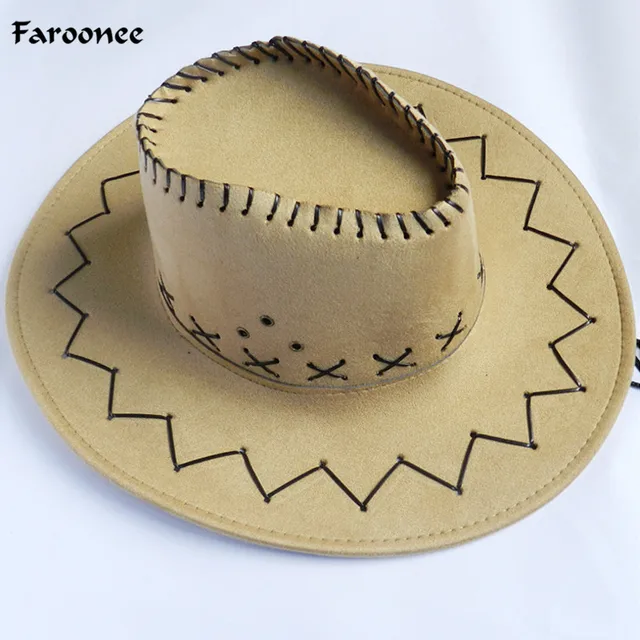 | [해외]Faroonee 2017 남성 서양 카우보이 모자 수제 PU 가죽 여행 스웨이드 여름 태양 모자 청바지 모자 챙이 넓은 패션 남성 WS535 |