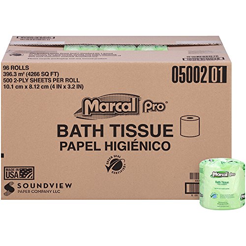 Marcal Pro #05002, 100% Recycled, Green Seal Certified Toilet Paper, 2-Ply, 500 sheets per roll, 96 rolls per case