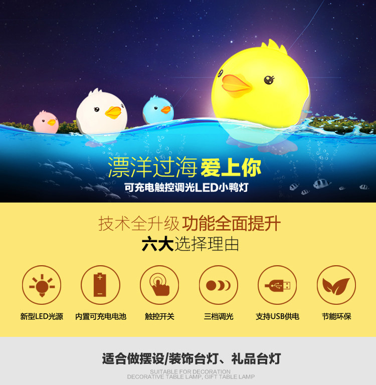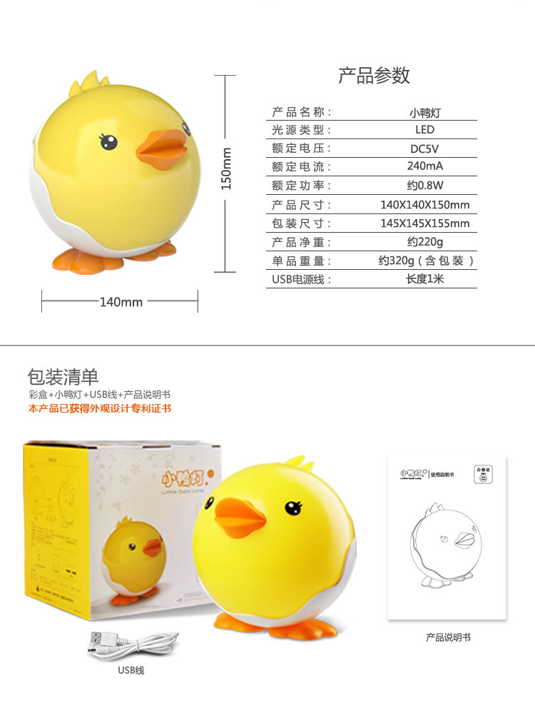 可充电触控调光LED小鸭灯 宝宝喂奶起夜 床头创意夜灯