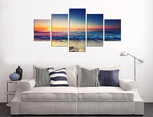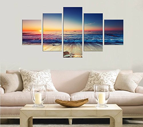 5 Piece Large Canvas Painting Sunset Beach Blue Ocean Art Canvas Prints Wall Art Framed Ready to Hang for Home Decoration.Introduction: