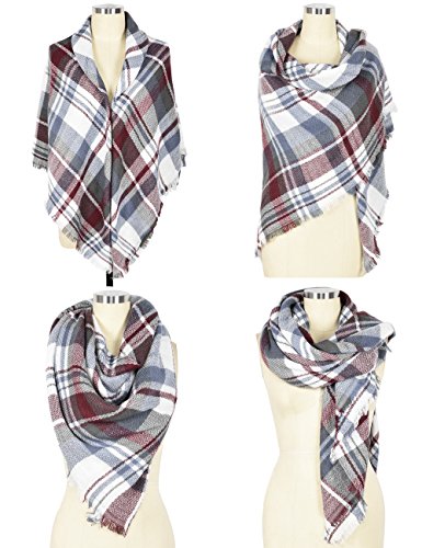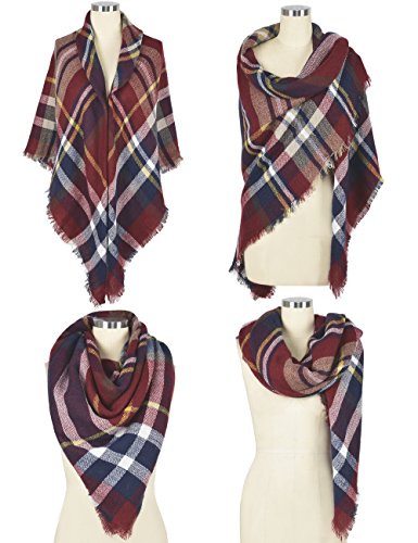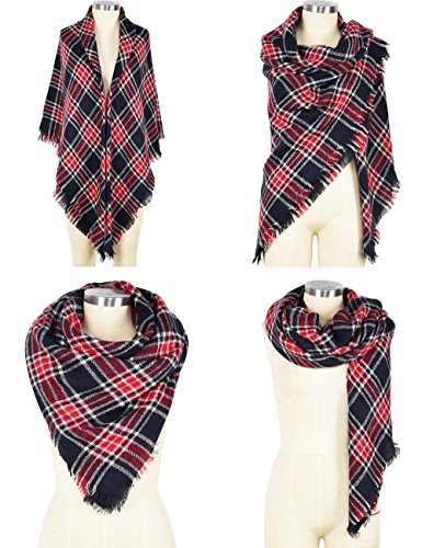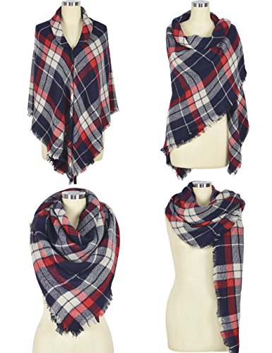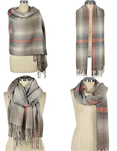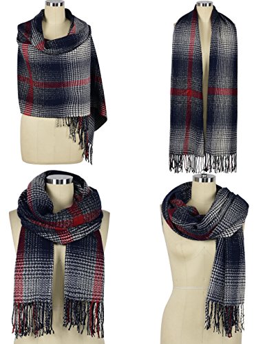| Ninovino Women's Fashion Long Shawl Tassels Soft Plaid Winter Blanket Scarf |