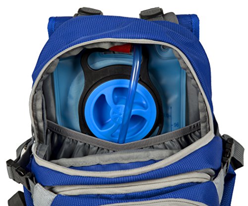 HYDRATION BLADDER INCLUDED: BPA free 3-liter (100 ounce) hydration bladder included; Complete with lightweight, durable, kink-free sip tube and push-lock cushioned bite valve; Large 3-inch (7.6 cm) opening for ice that also makes cleaning easy