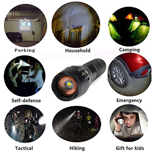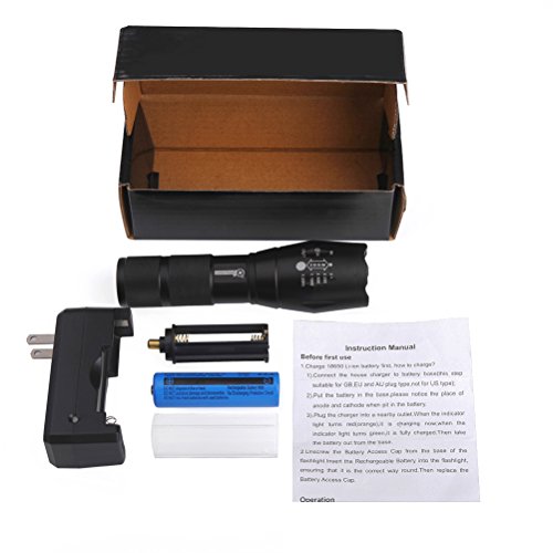 Tactical Flashlight Super Bright T6 CREE LED Flashlight Zoomable Tactical Flashlight Rainproof Lighting Lamp Torch -with Rechargeable Battery -For Cycling Hiking Camping Emergency