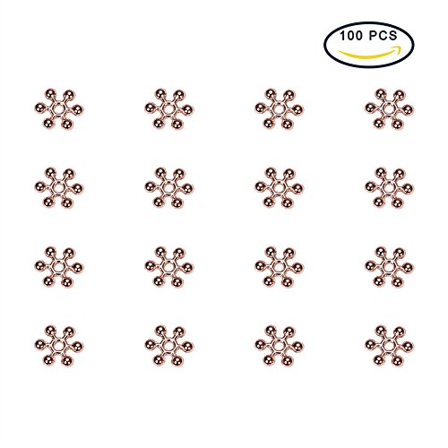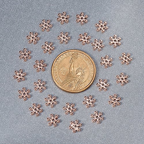 Pandahall 100pcs Rose Gold Snowflake Zinc Alloy Beads Spacers Jewelry Findings, 8.5x2.5mm