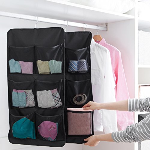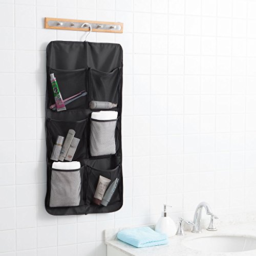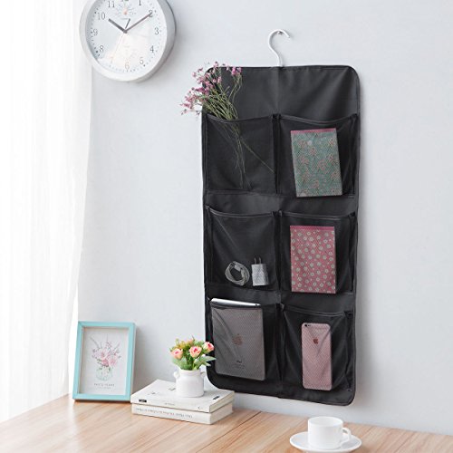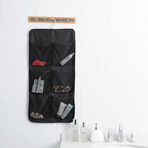 UNIKON 7 Pockets Hanging Closet Dual-sided Organizer Hanging Toiletry Bag Book Shelf, Black
