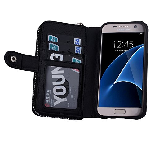 원본상품명: eloiro Samsung Galaxy s7ジッパ?財布ケ?ス、PUレザ?ボタンロック開閉部取り外し可能シェルフォリオフリップバックカバ?保護ソフトスキン現金、カ?ドスロット&取り外し可能なストラ