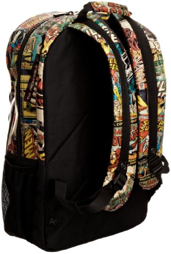 Stylish Marvel Retro Back Pack, with all over comic print. Has 4 lined zipped compartments with 2 outside pockets for water bottles and padded back straps. With all your favorite Marvel characters printed on it.