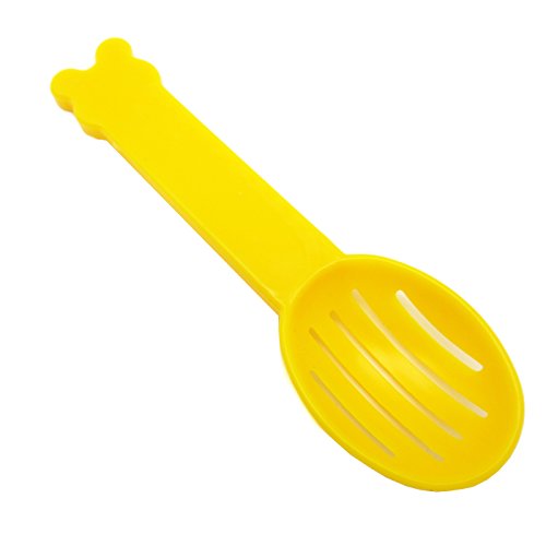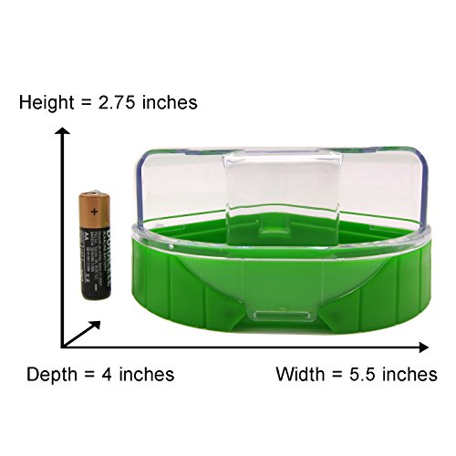 Ideal for hamster, mouse and other small furry animals. It measures 5.5" in width and 2.75" in height and 4" depth. The scoop is 4.5" long and 1.25" wide.