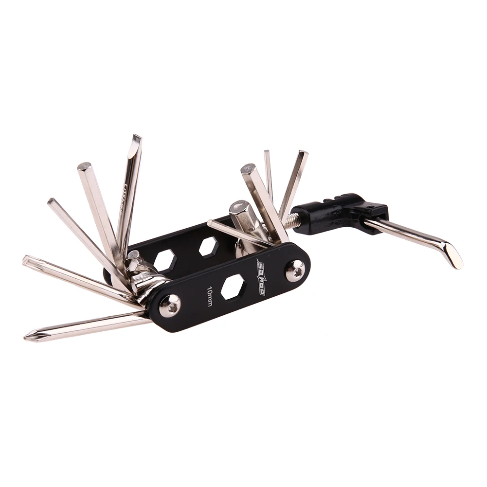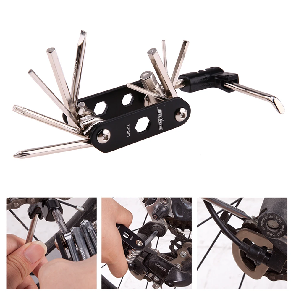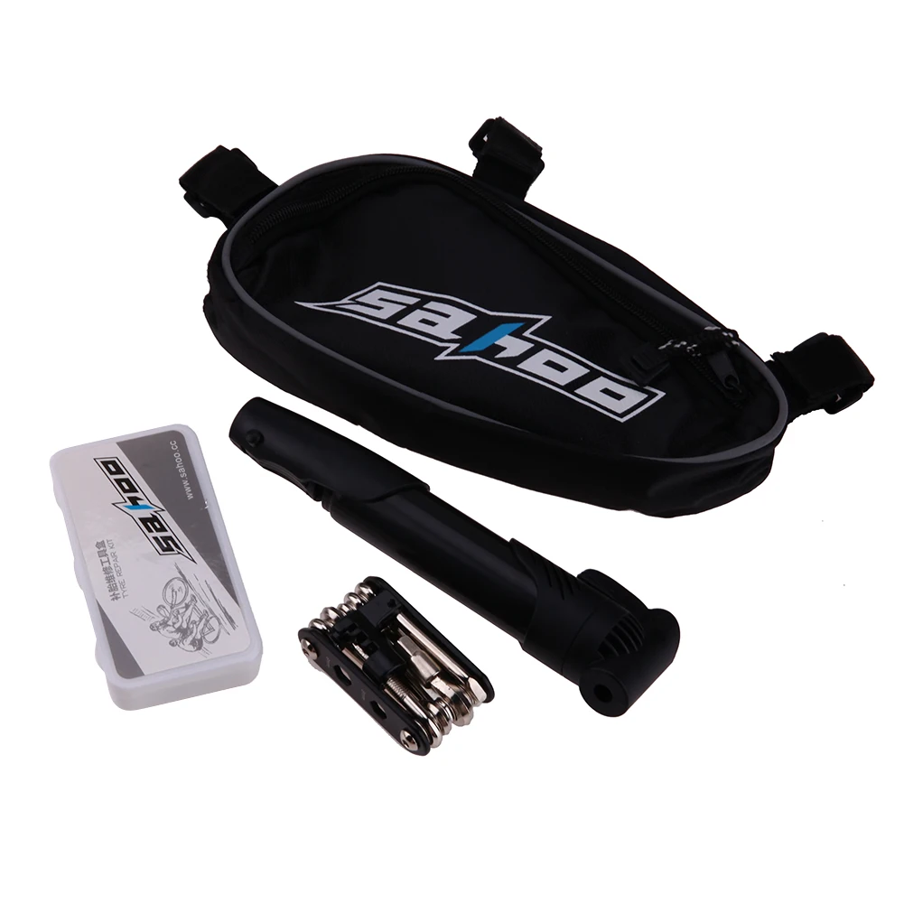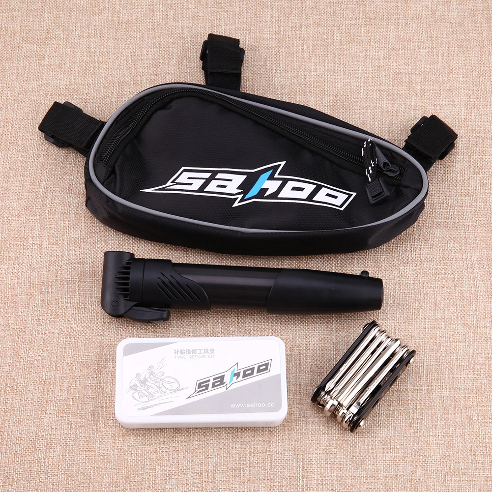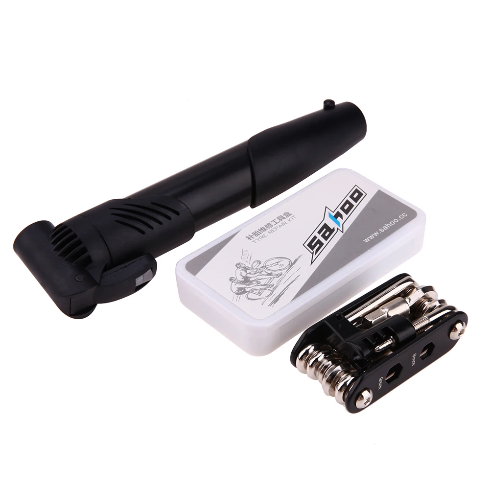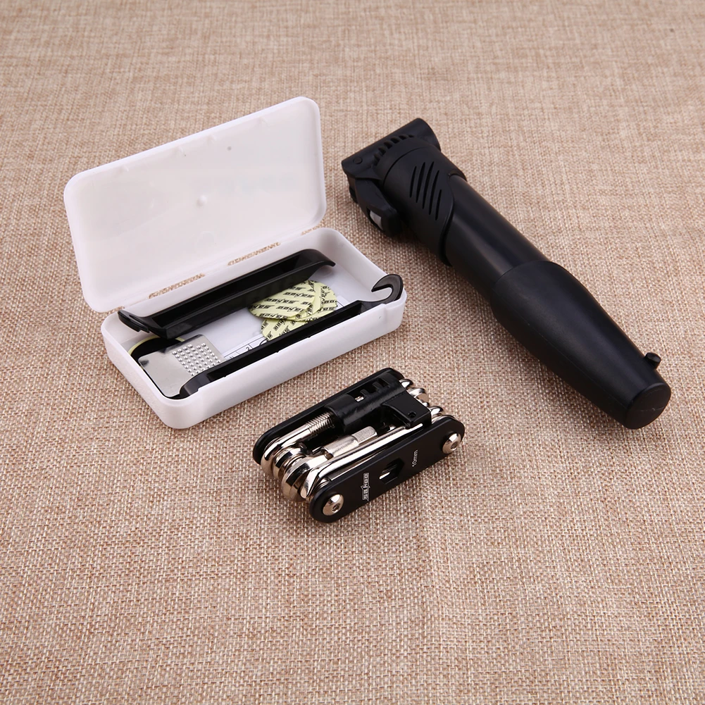 | Features: A great multifunctional bike repair set. With good quality」ャ durable」ャ full function. Easy to carry and convenient to use. Lightweight 」ャ convenient to hang on your bike tube. A must-have for cyclist on short or long journeys. 15 in 1 kit functions includes: Socket wrench 8/9/10mm Straight screwdriver Phillips screwdriver T25 screwdriver Hex key wrench 2/2.5/3/4/5/6/8mm Chain extracter Specifications: Package size: 23.5 * 11 * 4.5cm Package weight: 438g 1 * 14 in 1 tool set 1 * 8cc rubber patch cement 1 * Metal rasp 3 * Patches (25mm dia.) 3 * Patches (34mm dia.) 3 * Patches (32 * 50mm oval) 2 * Plastic tire levers 1 * Belt pouch 1 * Bike pump [relateproductdetail/] |
