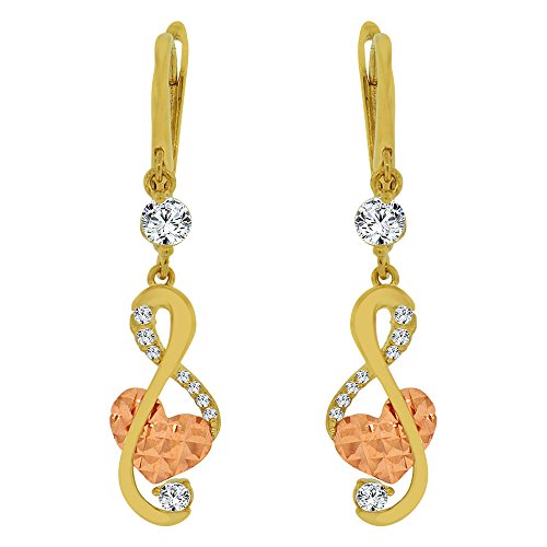 -. Binding : Jewelry -. Brand : GiveMeGold -. Department : womens -. Feature : Genuine 14k gold. NOT plated or filled. / Timeless design is perfect for all occasions. / Elegantly polished and subtle facets for a gleaming shine. / It dangles elegantly on the ear. Easy manage backings. / Gift Box is included with purchase. Ships with signature requirement. -. ProductGroup : Jewelry -. ProductTypeName : FASHIONEARRING -. Title : 14k Yellow & Rose Gold, Musical Note Heart Dangling Drop Earring Created CZ Crystals