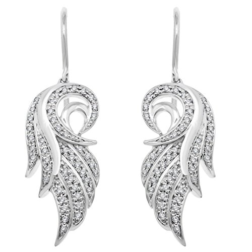 -. Title : IGI Certified 925 Sterling Silver Diamond Angel Feather Wing Drop Earrings (1/5 Carat)