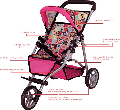 Studio : Doll Stroller's Pro Publisher : Doll Stroller's Pro Binding : Toy Product Description Let your little girl get her doll around with ease in this stroller. This Doll Jogging Stroller features a single front wheel for easy pushing and added style. Buckle to hold doll secure. Easy fold and go. with Butifull stylish colores. 0