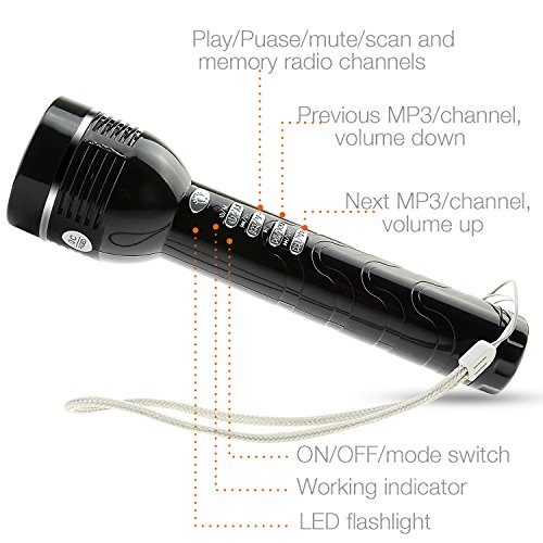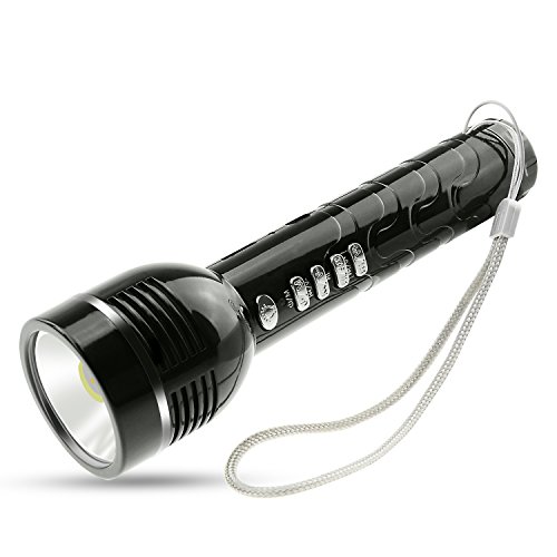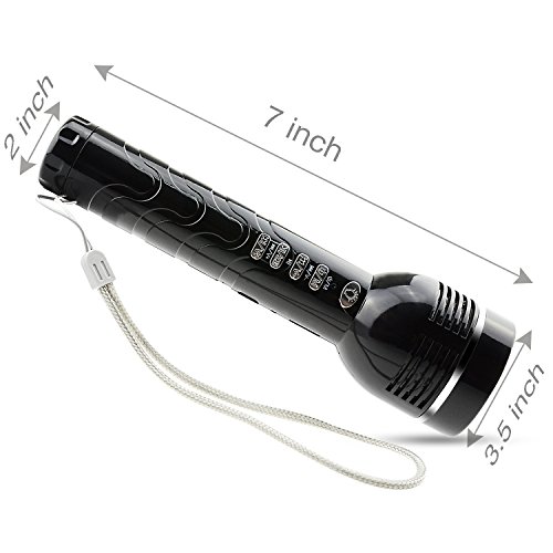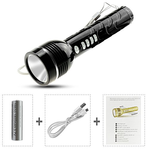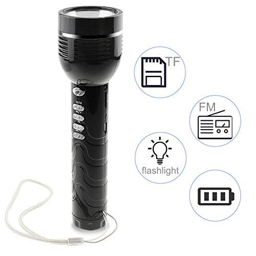 LEFON Multifunctional Music Flashlight FM Radio Media Speaker MP3 Player Support TF Card With High Capacity Rechargeable Battery (Black)