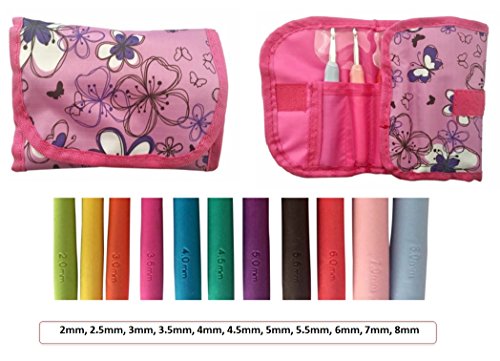 - EXCELLENT VALUE: 11 sizes crochet hook set. This crochet needle kit includes 11 crochet hooks in just about every size you need. 2mm, 2.5mm, 3mm, 3.5mm, 4mm,4.5mm, 5mm, 5.5mm, 6mm, 7mm, 8mm and a high quality purse organizer. Perfect idea inspiration; ideal for all yarns and for every project; a great addition to your creative collection.