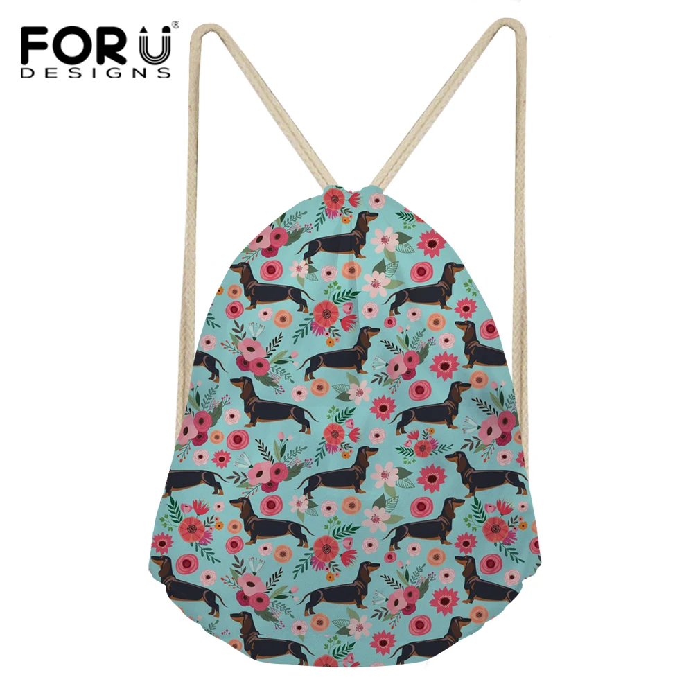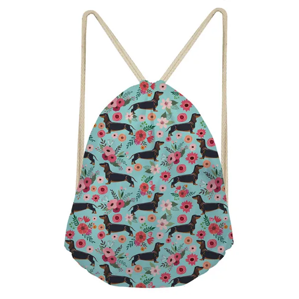 item pattern:cute achshund floral prints drawstring bag