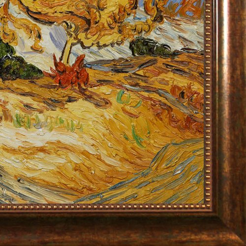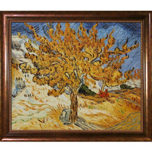 20-inch by 24-inch oil painting on canvashand painted oil reproduction of one of the most famous van gogh paintings, the mulberry tree. The original masterpiece was created in 1889. Today it has been carefully recreated detail-by-detail, color-by-color to near perfection. Why settle for a print when you can add sophistication to your rooms with a beautiful fine gallery reproduction oil painting?vincent van gogh's restless spirit and depressive mental state fired his artistic work with great joy and, sadly, equally great despair. Known as a prolific post-impressionist, he produced many paintings that were heavily biographical. This work of art has the same emotions and beauty as the original by van gogh. Why not grace your home with this reproduced masterpiece? It is sure to bring many admirerspainting arrives framed in verona cafe; 2-inch wood frame with a coffee brown finish. Exterior dimensions are 24-inch by 28-inchFeature