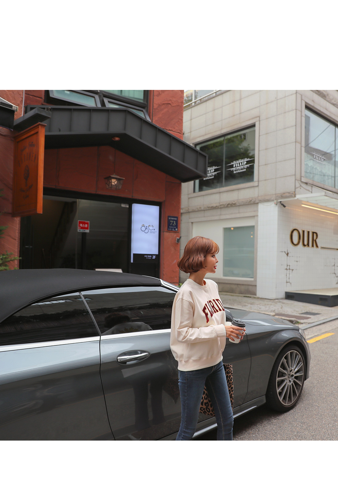 깔끔한 레터링 자수패치가 매력적인 맨투맨 이랍니다.