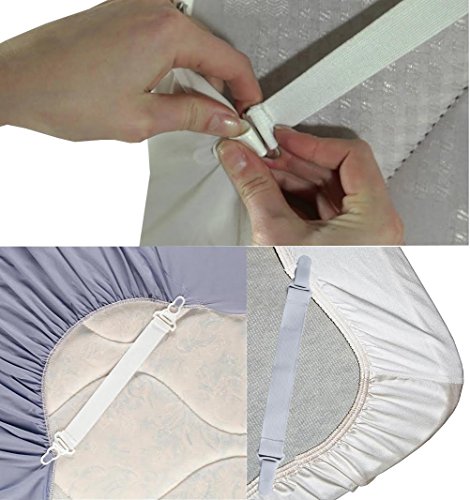 (Set of 8) Bed Sheet Straps Suspenders / Sheet Fasteners, White / All Bedsheets Fitted Sheets Flat Sheets