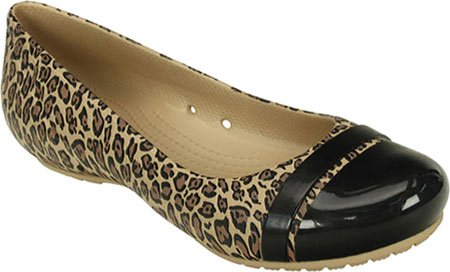 crocs Women's Cap Toe Leopard Print Flat