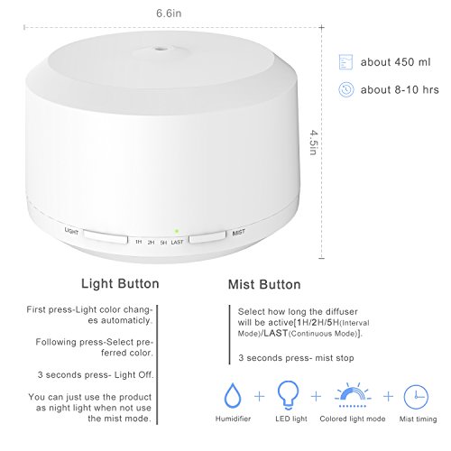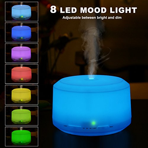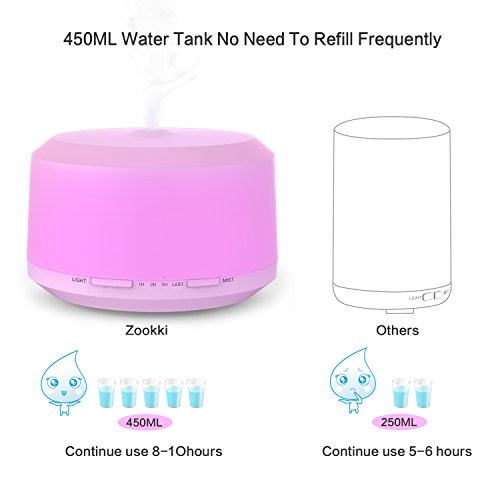 -. Title : 450ML Essential Oil Diffuser with 8 LED Color Changing Lamps, ZOOKKI Aromatherapy Diffuser for Essential Oils with 4 Timer Settings and Waterless Auto Shut-off Feature for Large Room