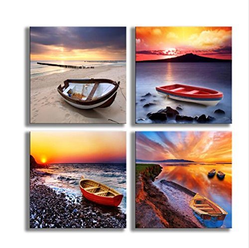 YPY Painting Beach Stone Sea Shells Sand Sunshine 4 PCS Wall Art Stretched Canvas Art Set Framed Ready to Hang