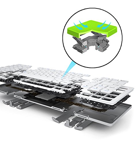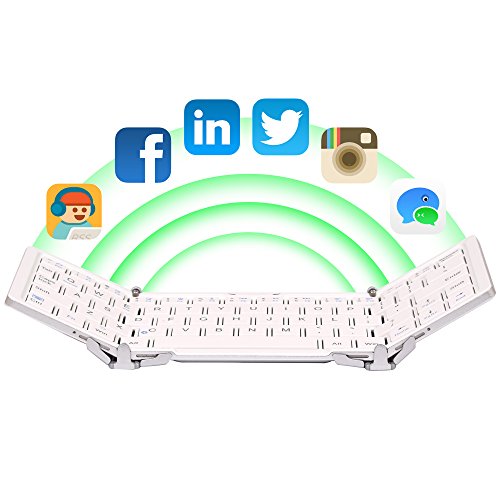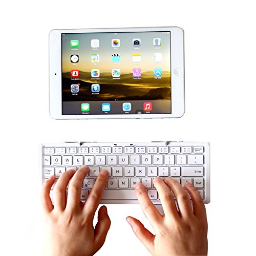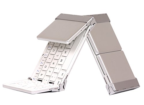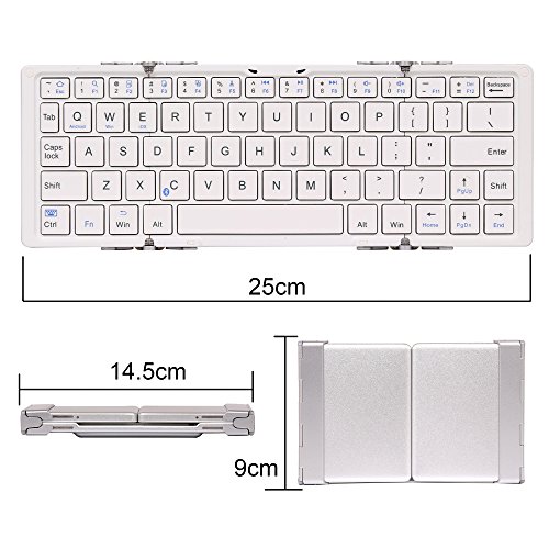 ETvalley Foldable Bluetooth Keyboard, Ultra-Thin Wireless Keyboard for iOS/Android/Microsoft System PC Tablet Smartphone, QWERTY Keyboard, USB Rechargeable—Silver