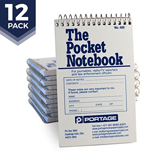 Portage Pocket Sized Notebook for Journalists and Reporters, Law Enforcement Professionals and More – 3.75” x 6” Gregg Line Spacing, Narrow Ruled Spiral Notebook - 140 Pages (12 Pack)