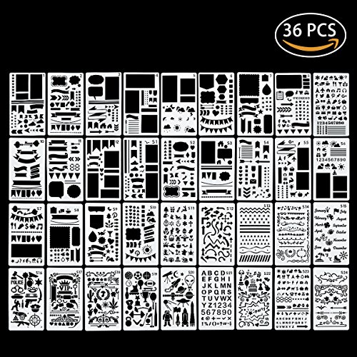 36PCS Plastic Stencil Bullet Journal Stencil Planner Stencils Drawing Template Set for Journal Notebook Diary Scrapbooks DIY Painting Craft