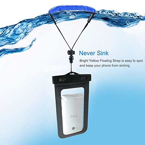 -. Feature : UNIVERSAL - size waterproof case bag fits all smartphones up to 6.0" diagonal size (Certain big screen phones need to remove protective case); Credit card wallet money waterproof dry bag for beach, fishing and water park activities. / SAFELY USE - up to 100 feet IPX8 Certified waterproof; Offers waterproof / snowproof / dirtproof protection for your device while maintaining full touch screen functionality PICTURES OR VIDEO - Crystal Clear window allows you to take pictures or record video. Plus, you can still use your touch screen. / LANYARD - This case includes a lanyard, so you can wear the waterproof case around your neck, or attach the floaty wrist strap. / PICTURES OR VIDEO - Crystal Clear window allows you to take pictures or record video. Plus, you can still use your touch screen while safely attaching to your wrist with floating wrist strap. / IT MAKES SENSE - Bright Colored Floating Strap - Sits high in the water making it easy to spot and keep your phone from sinking. You can also strap the phone to your wrist. Case features a simple snap and lock access, easy to keep out water, snow, dust, sand, and dirt.