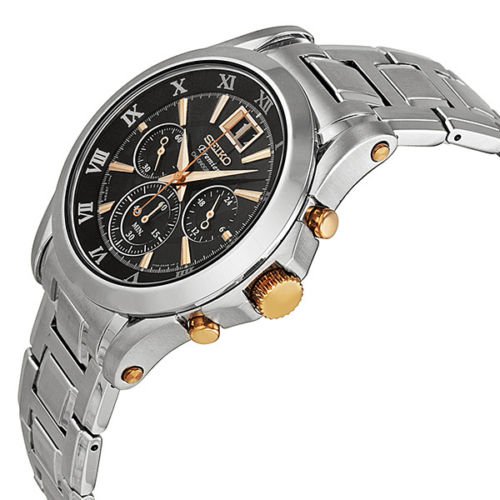 Seiko Premier Chronograph Stainless Steel Case and Bracelet Date Display Black Tone Dial Men