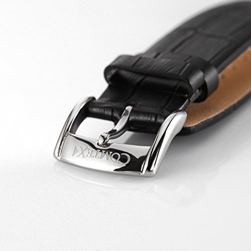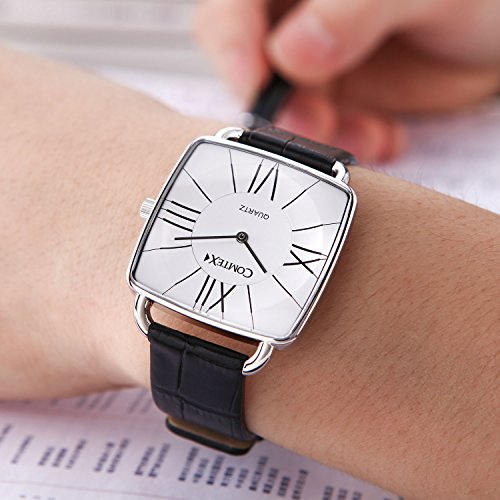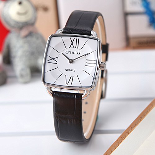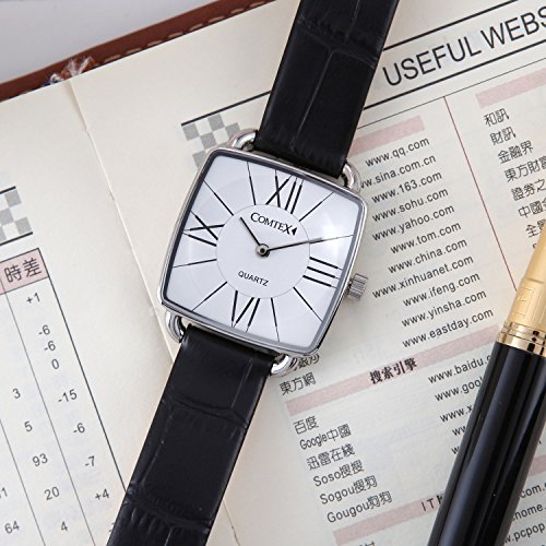 COMTEX Women's Watches White Dial with Black Leather Simple Ladies Dress Square Wrist Watch for Ladies