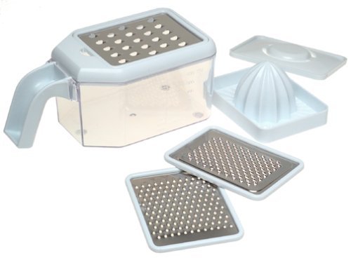 - Has 3 stainless steel grater blades; egg separator and plastic juicer