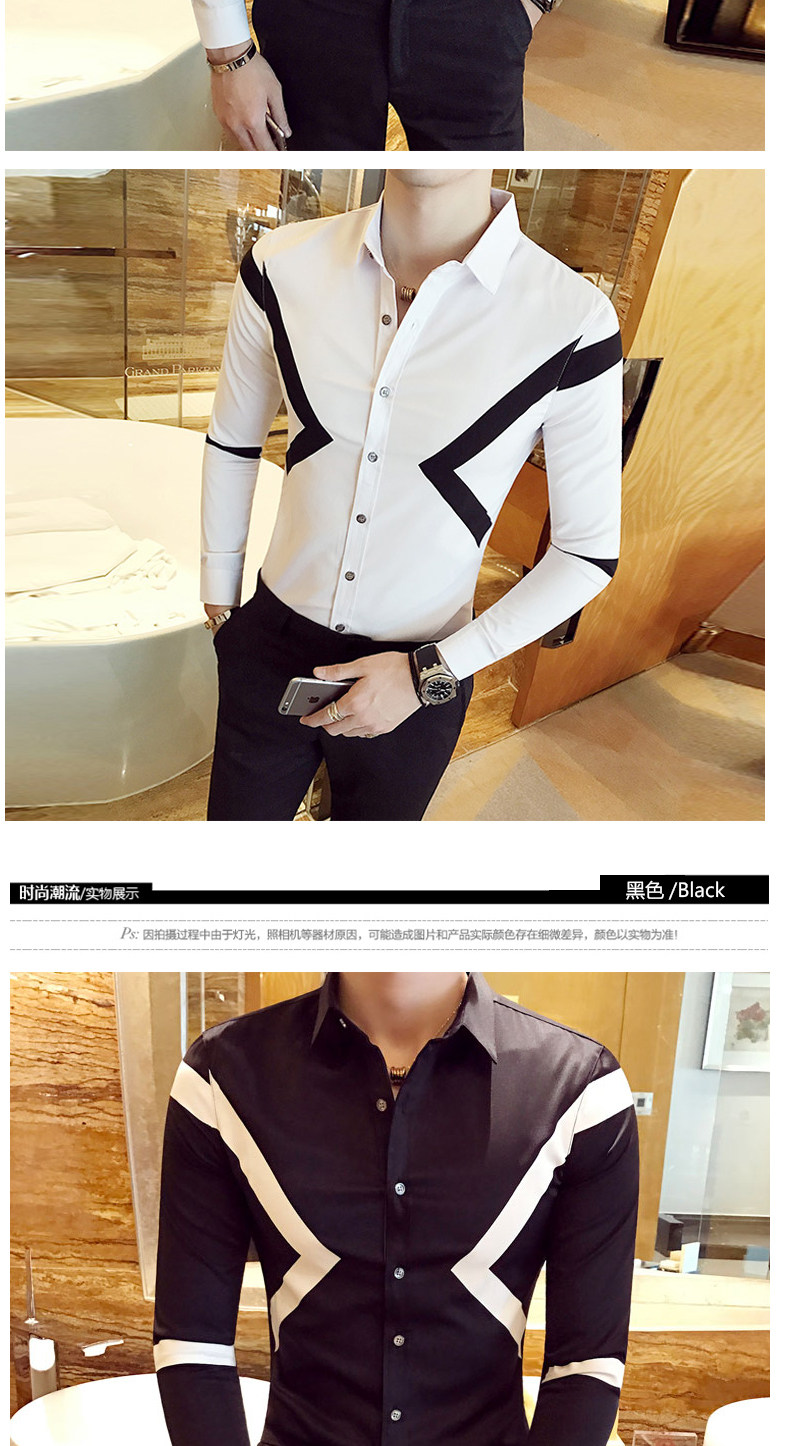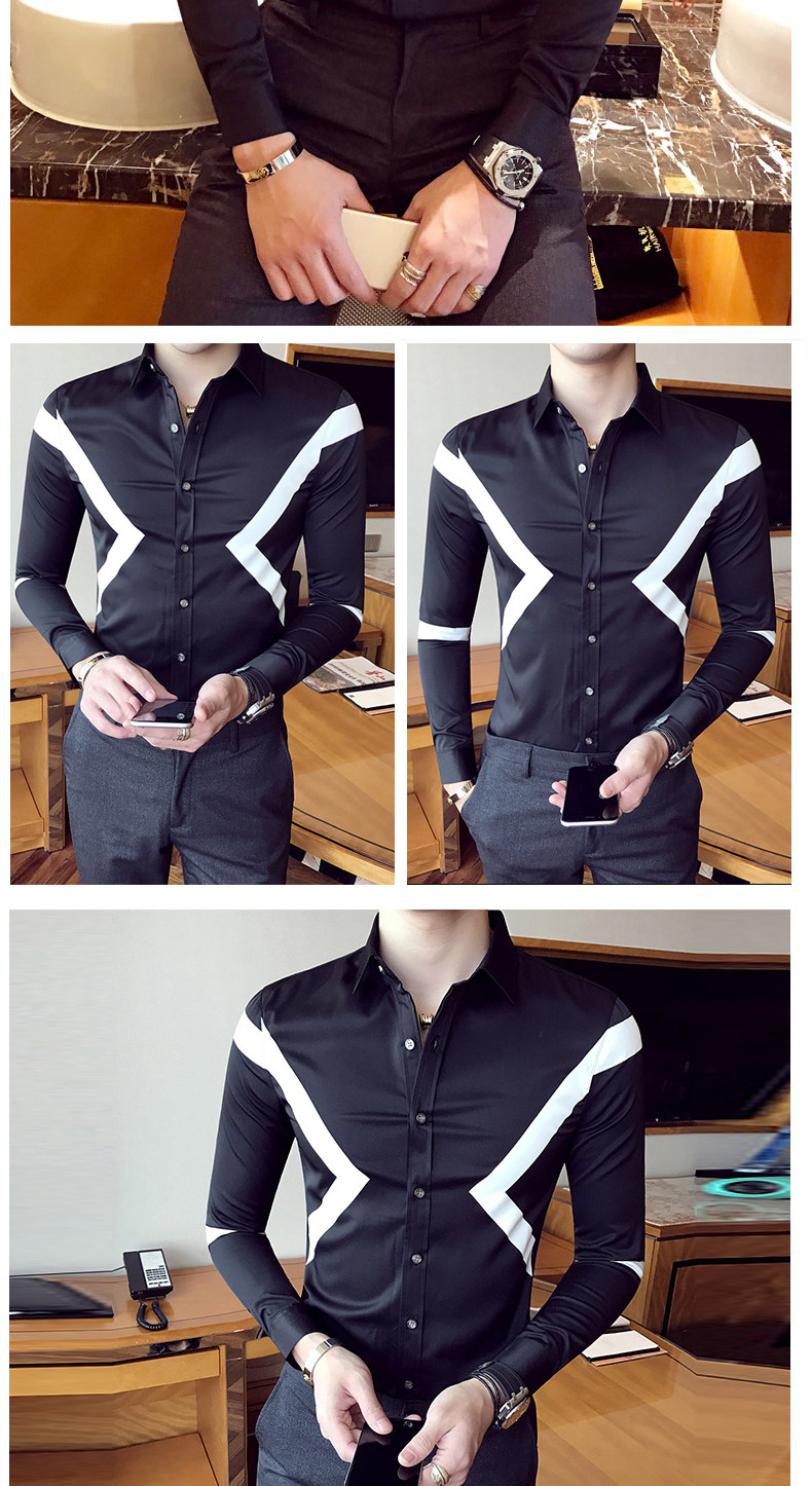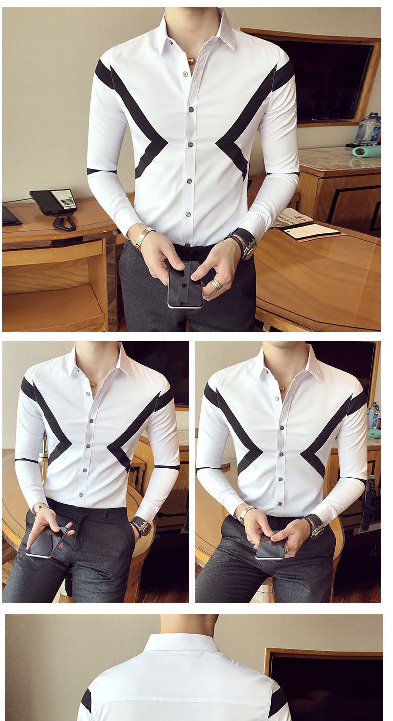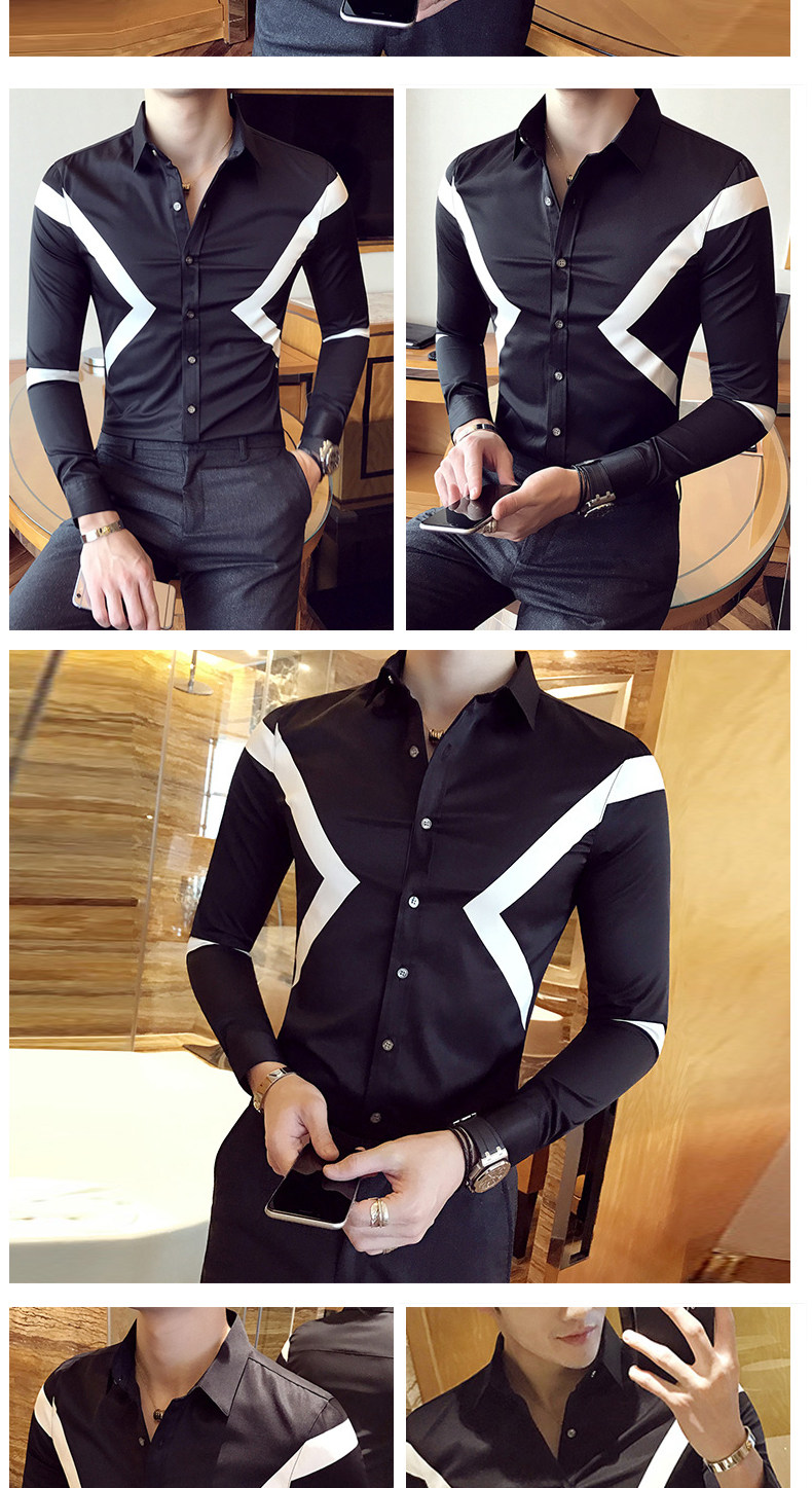 春季青年英伦潮流休闲衬衣男士韩版拼色寸衫修身商务长袖衬衫