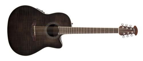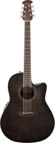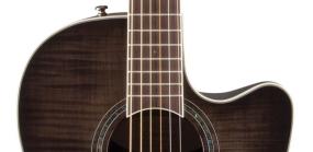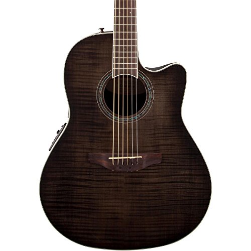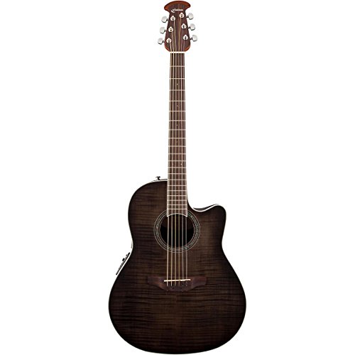The Celebrity Standard Plus series is your first step into the world of Ovation, with select figured tops, beautiful abalone appointments and first-rate sound, features and value. The Celebrity Standard CS24P-TBBY guitar has the classic mid-depth Lyrachord cutaway body with a fiery flame maple top featuring quartersawn scalloped “X” bracing. We reviewed earlier Ovation bracing patterns extensively to arrive at this remarkable new design, which borrows from the past and is voiced for the present with natural tone and optimal response and power. Together, body and top create the classic Ovation sound, resonating with full projection, remarkable note clarity and balance, and nuanced tonal complexity. The flame maple top also has an elegant abalone rosette, ivory white binding and entrancing Trans Black gloss finish.