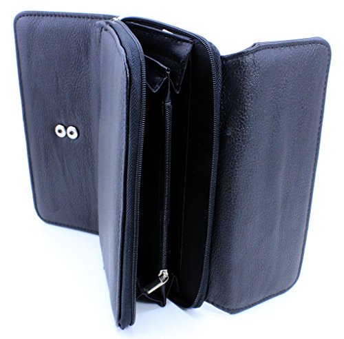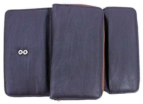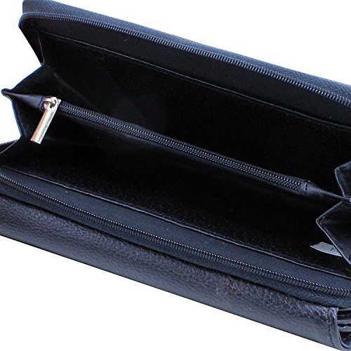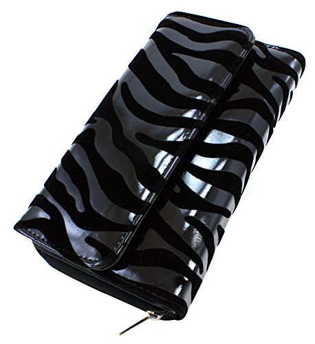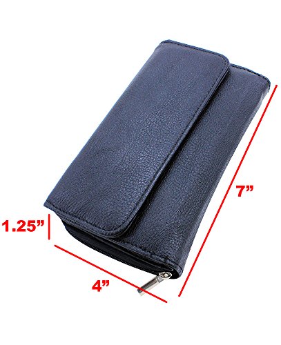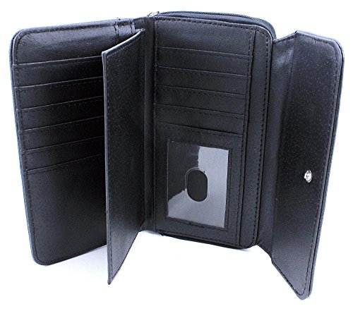 -. Feature : Women's Clutch Checkbook Trifold Style Vegan Wallet / Removable Checkbook Holder / Metal Snap Button Closure & Side Zipper Compartment, Zip Coin Pocket / PVC Leather Material with Polyurethane (Synthetic / Vegan) / 10 Credit Card Slots, 1 ID Window, 3 Large Slot Pockets