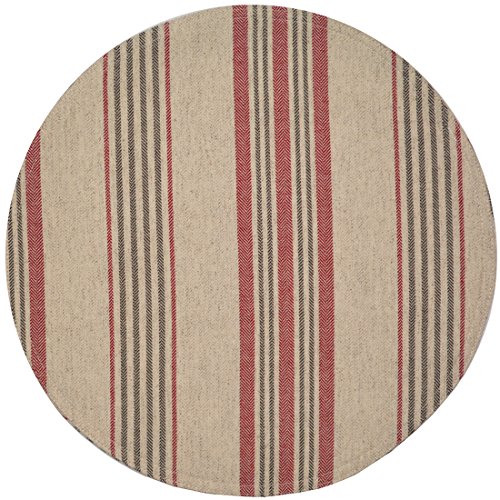 -. Feature : SOLD INDIVIDUALLY. / Measures approximately 13 inches across after washing. / Machine Washable, Dry Flat. / Red and Tan Herringbone Stripe Round Placemat has same fabric on the reverse. Easy Care. Wash before use. / Reversible design. Center Rounds work great as an accent in the center of either a round or rectangle table or they can be used as a charger on any table.