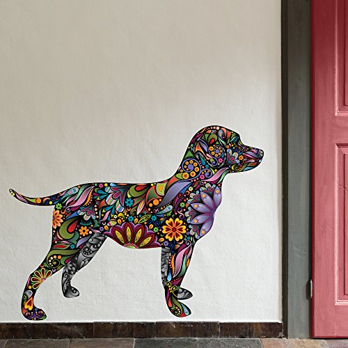 - Labrador Retriever dog decal in a multicolored floral pattern