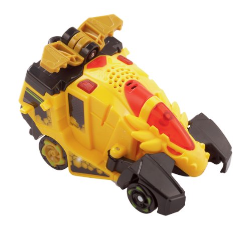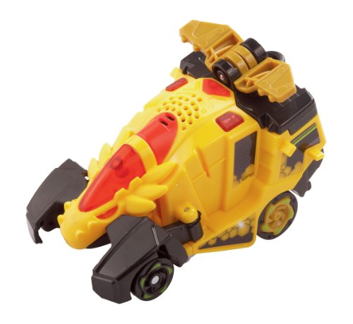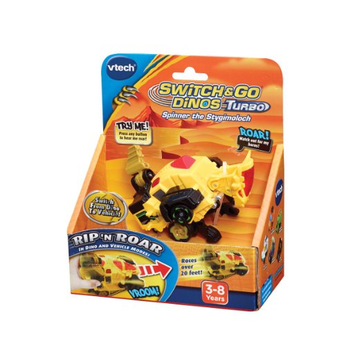 Studio : VTECH Publisher : VTECH Binding : Toy Product Description This is Spinner the Stygimoloch, watch out as he loves ramming into things! Push the dino to charge up the wheels, then let go to watch it race away! Switching between a dino and car is easy to do in a few simple steps, making this 2-in-1 toy hard to put down! Press the talk button to hear fun phrases and to learn dinosaur facts, then tap the sound button to hear great dinosaur and car sound effects. Converting between the two different modes helps your child develop motor skills and the exciting sounds and facts help to promote imaginative and independent play. Age: 3-8 Years Requires: 1 x AAA Battery (Included) 0