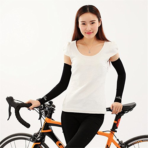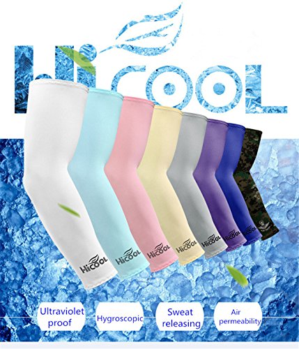 The sun protedtion and cooling sleeves are perfect for summer time. They can protect your arms from UV harm and cool down the arms' temperature. When you are climbing or hiking outside, the sleeves can save your arms from mosquitoes' bite. With compression function, protecting your muscle from stretch hurt. SIZE - Upper arm circumference: 6.3 Inches, lower arm circumference: 8.6 Inches, Lehgth: 14.5 Inches great elasticity, suitable for all persons.