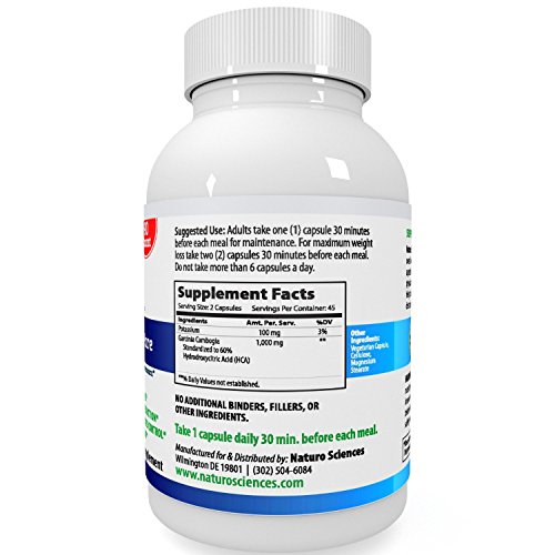 - Title : Garcinia Cambogia By Naturo Sciences - 90 Count - Extract Pure - Ultra Slim Weight Management and Mood Enhancer - Natural Appetite Suppressant and Weight Loss Supplement - Lose Belly Fat Fast - Read Below and Learn How to Naturally Lose Weight Without Feeling Like You're on a Diet - 1000mg Per Serving, 45 Servings