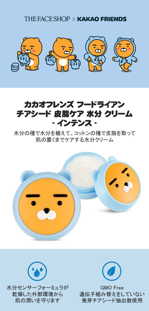 【韓国直送】 韓国コスメ <THE FACE SHOP X KAKAO FRIENDS> カカオフレンズ フードライアン チア シード 皮脂取る 水分クリーム インテンス (50ml)