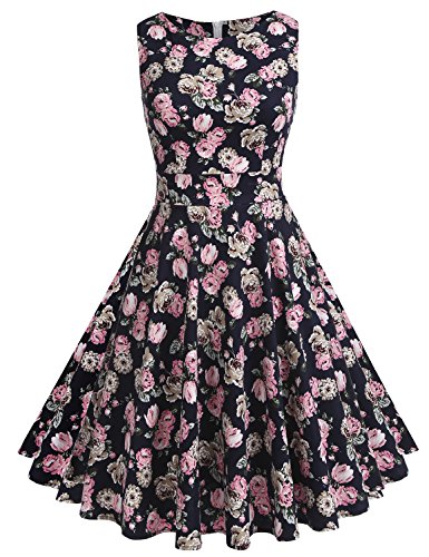 Ladies 40's 50's Vintage Retro Print Full Circle Flared Party Bridesmaid Tea Dress