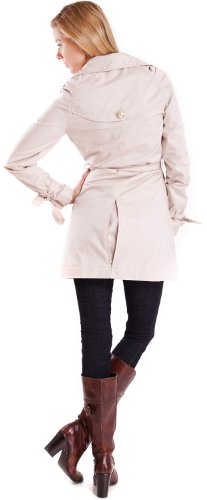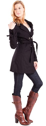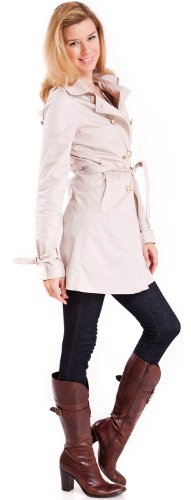 Product Description Ladies Belted Trench Coat. This jacket features a double breasted opening with embellished buttons, deep side pockets, and a waist sash tie, Approximately 35" in length, 100% Cotton. 0