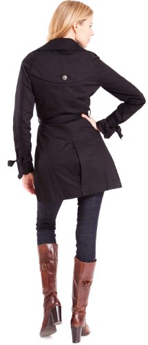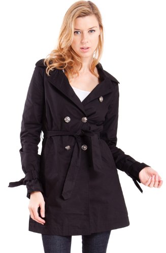 (Clothes Effect)/Women/Outerwear/DIRECT FROM USA/Ladies Embellished Double Breas ted Cotton Trench Coat Sash Tied Wais t Black Khaki